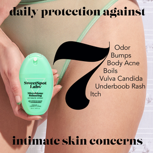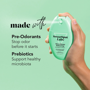 Odor is totally normal - regardless of where it happens! Instead of masking intimate odor with harsh fragrance, Microbiome Balancing Spray neutralizes odor-causing bacteria with powerful Pre-Odorants and supports a healthy microbiota with Prebiotics. Not only does this stop odor before it starts, it also helps to protect from bacterial & yeast imbalances that can lead to intimate breakouts, bumps, itch and irritation.